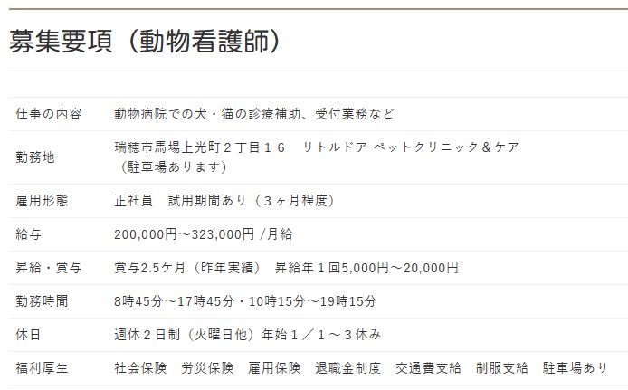 求人情報・動物看護師・非常勤獣医師 2026年1月11日 最終更新日時 : 2026年1月11日 ldmino 動物看護師さん、非常勤獣医師さんを募集しています。無理なく勤務を続けられる環境づくりを行っています。詳しくは下記の特設サイトでご案内しています。 リクルート・求人情報